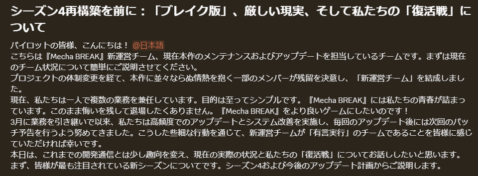 公式Discordにて「厳しい現実」という公式発表をしていた。